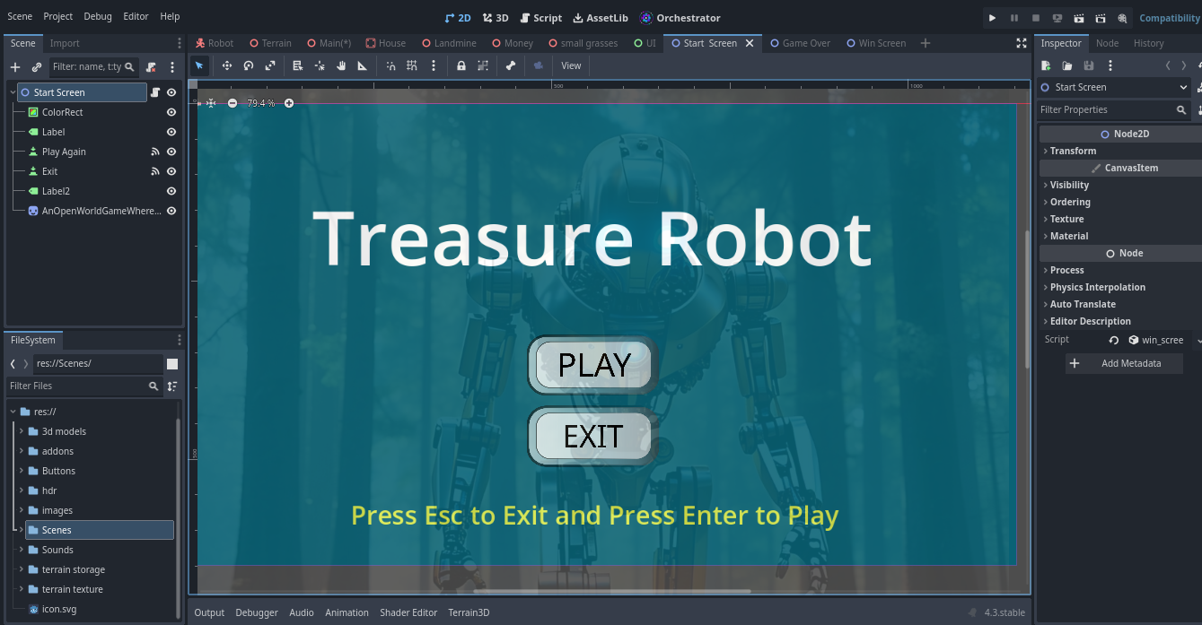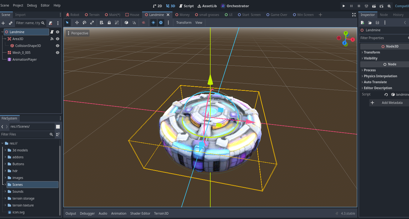 - Landmine: Objects that triggers the game over screen when the player touches them.